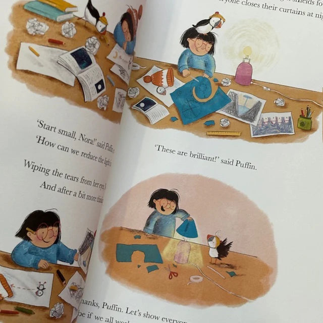 When baby puffins, pufflings start getting lost, Nora and her Puffin set out to find out why. Their adventure leads them to Puffin Island, where they discover that the moon and stars aren’t bright enough to guide the pufflings home. Can Nora and Puffin help save these tiny birds and find a way to make the night sky shine again?