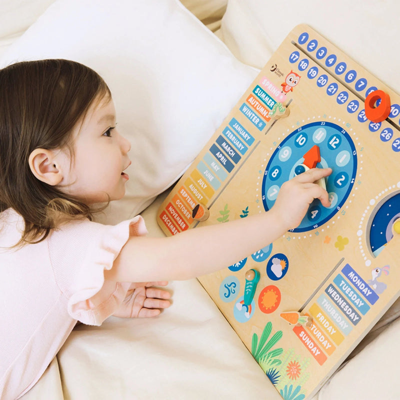 This colourful wooden calendar is a brilliant way for children to learn about days, months, seasons, and weather. With lots of interactive pieces, like an adjustable clock, sliders for the date and month, and weather selectors, your child can explore time and routines in a hands-on, playful way.