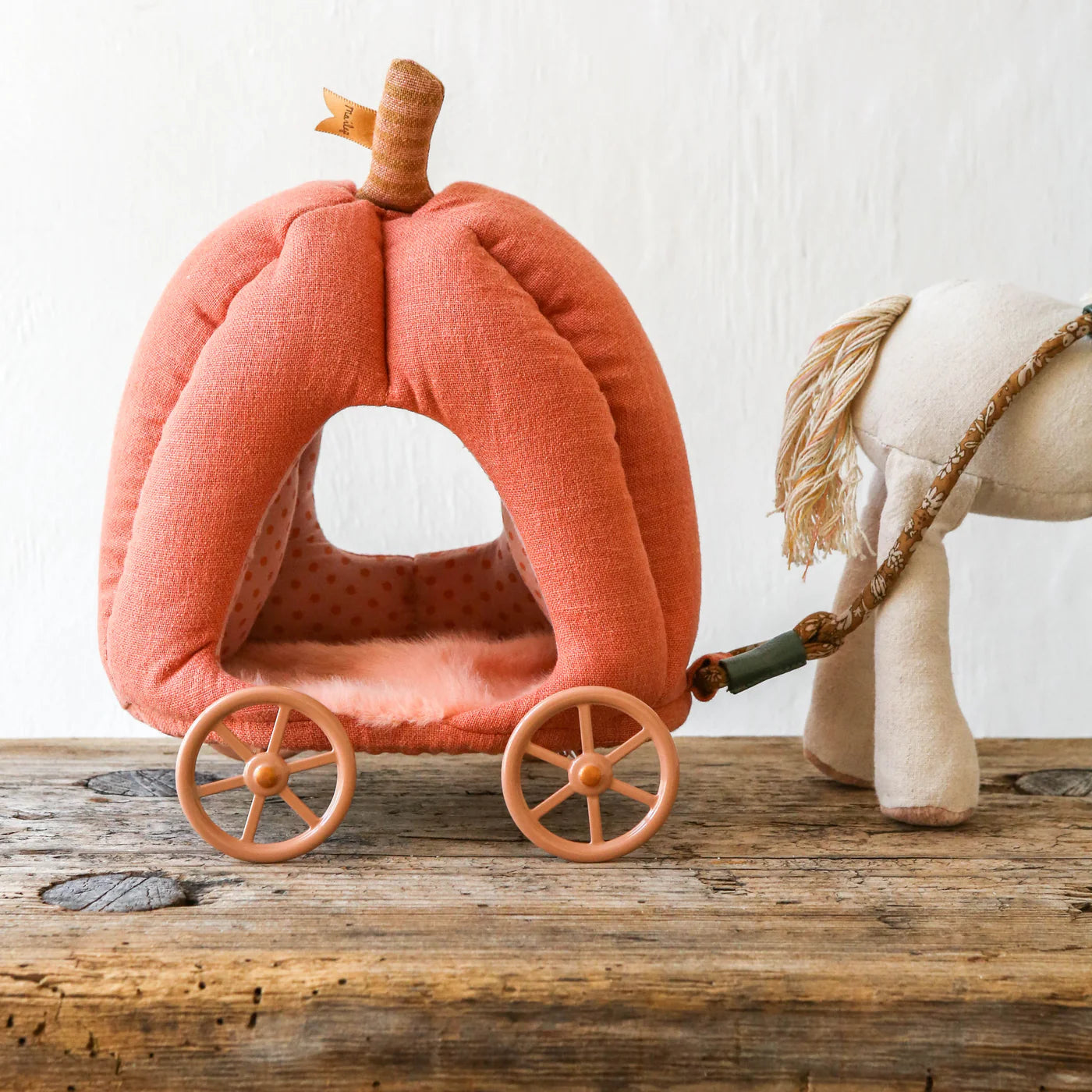 Let the fairytale begin! This beautiful pumpkin carriage is perfect for the royal mice family when they need to venture outside the castle. Your child can pop their Maileg mice inside and send them off to balls, adventures, or wherever the story takes them.👑