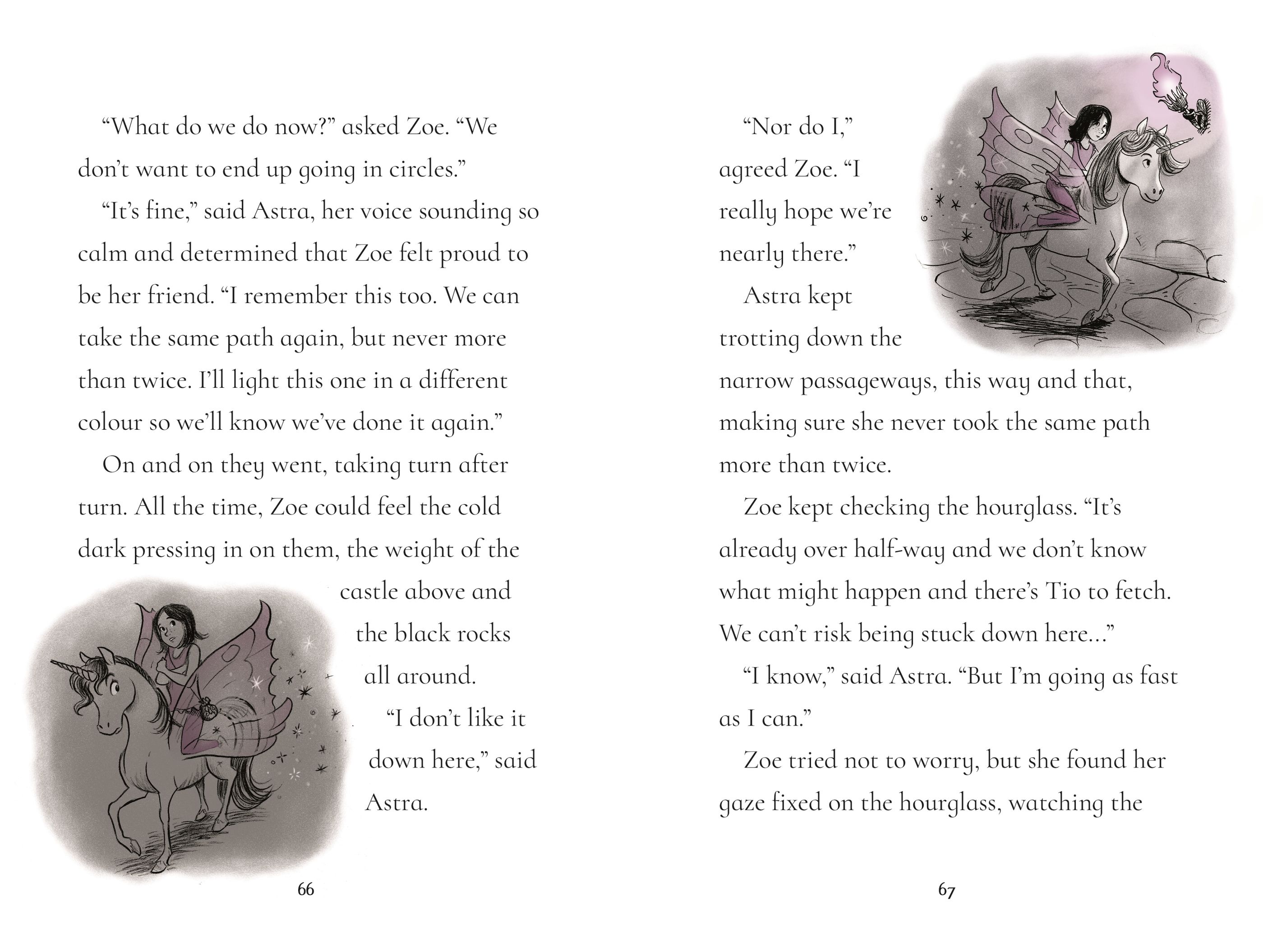 Zoe and Astra, the fairy unicorn, are on a quest to find the Silver Chalice. According to unicorn legend, the chalice can show the future… but first they must complete the Treasure Maze: three rooms packed with riddles and mazes, all before the hourglass runs out!⌛