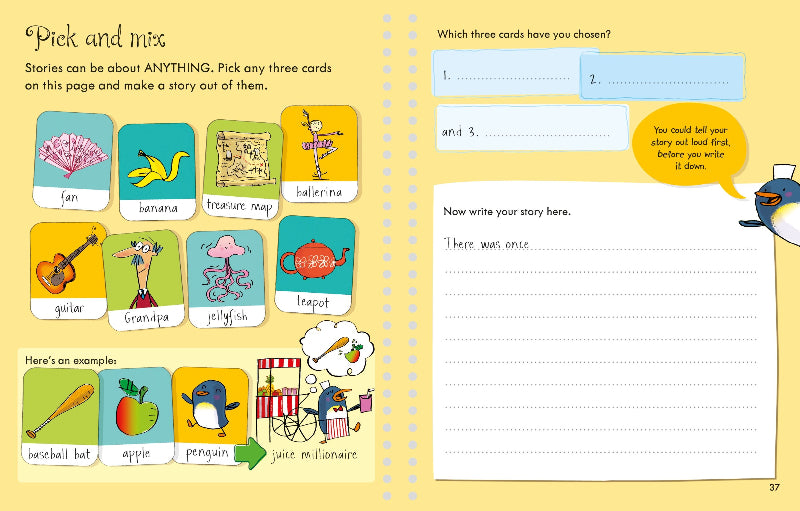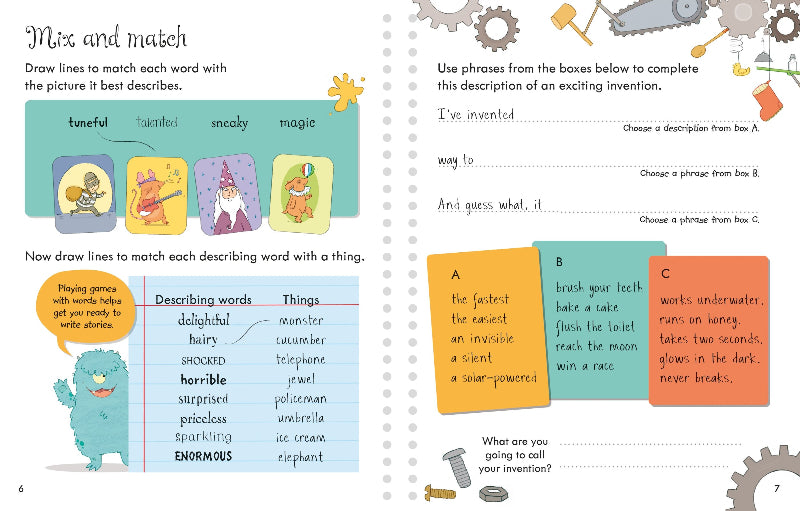 A colourful write-in book full of curious characters, unusual places, and exciting ideas to help your child write their own imaginative stories. With fun activities like word games, story mazes, and inventing diary entries for characters, plus tips on developing characters and writing descriptively, this book is packed with inspiration.✨
