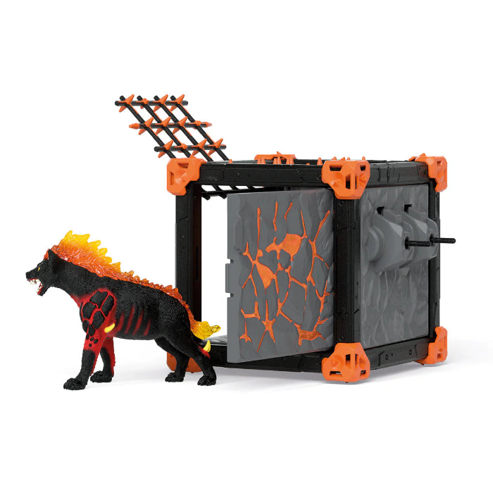 It gets scorching hot near the Battle-cave of the Lava Hyena! This fierce creature bares its sharp teeth and shakes its blazing mane - absolutely thrilling to behold.⚡But if you dare to get too close to the Battle-cave, you have to be careful: arrows are fired from the eyes of the scary mask and the bars open to reveal a trap!